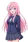 這幅動畫風格的插畫描繪了一位有著粉色長髮和明亮藍色眼睛的年輕女性。她身穿深藍色西裝外套,內搭白色襯衫,並繫著藍色條紋領結,下身搭配格紋百褶裙,整體造型為典型的學生制服。她的臉上掛著甜美的笑容,雙頰泛紅,眼神充滿活力和親和力,散發出青春洋溢、開朗的氣息。